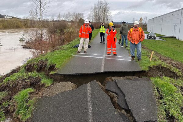 TUKWILA, Wash. — Crews used sandbags to shore up an earthen levee south of Seattle on Monday after a small…