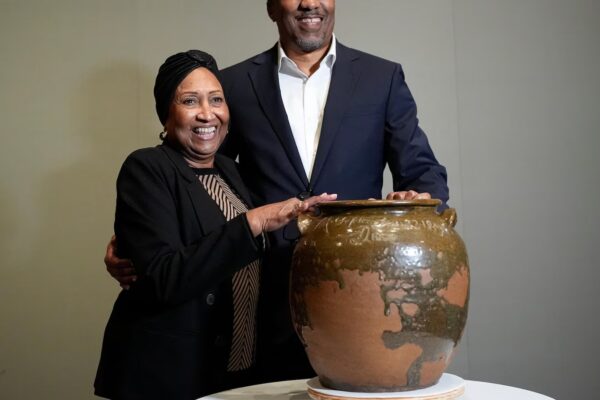 BOSTON — Inside the wide mouth of a stoneware jar, Daisy Whitner’s fingertips found a slight rise in the clay…
