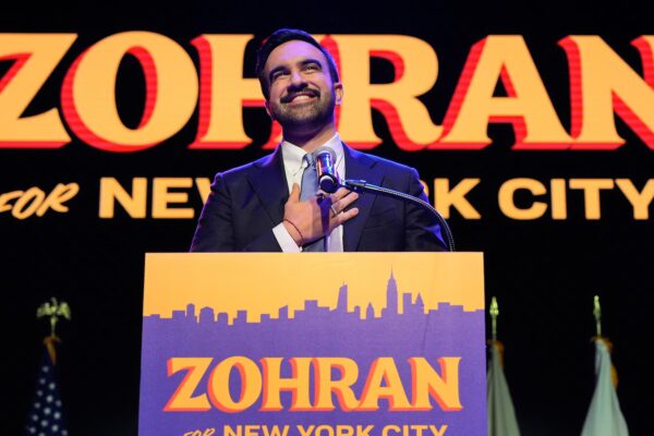 NEW YORK — The vivid blue campaign signs with bold orange lettering were impossible to miss as Zohran Mamdani made…