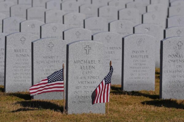 Normally on Veterans Day, volunteers gather at the Riverside National Cemetery in California to place flags alongside more than 300,000…