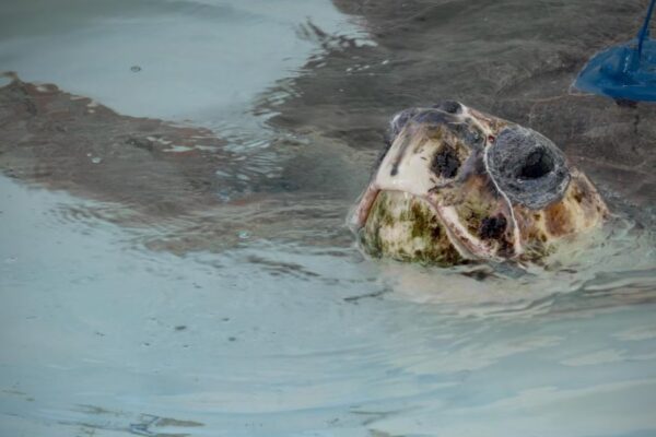 JUNO BEACH, Fla. — Cheers rose from a bundled-up crowd as a loggerhead sea turtle that survived a likely shark…