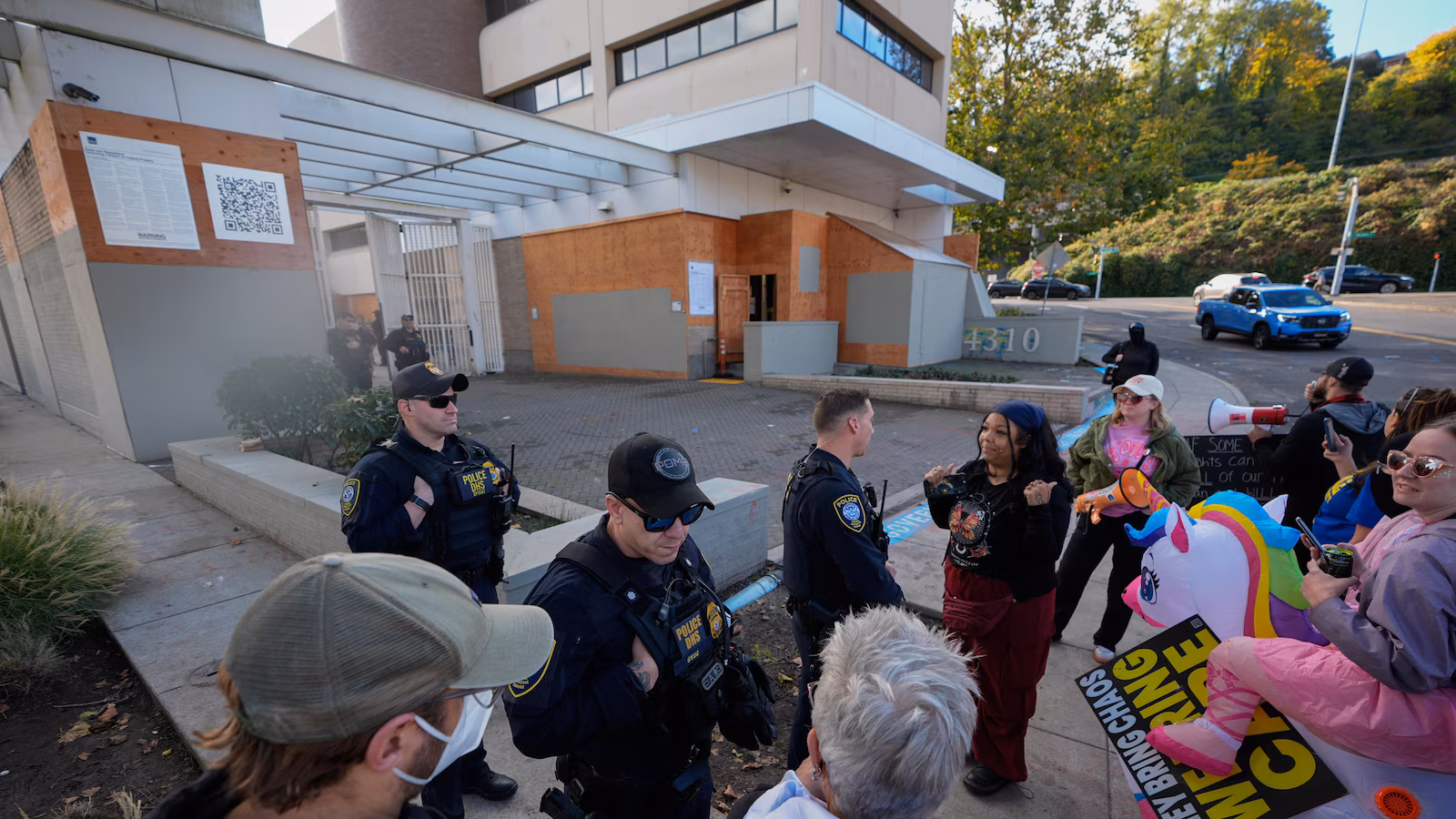Portland’s ICE building outside downtown has been the site of nightly protests that peaked in June when police declared one demonstration a riot. Smaller clashes have also occurred since then, and federal officers have fired tear gas to clear crowds, which at times have included counterprotesters and live-streamers.