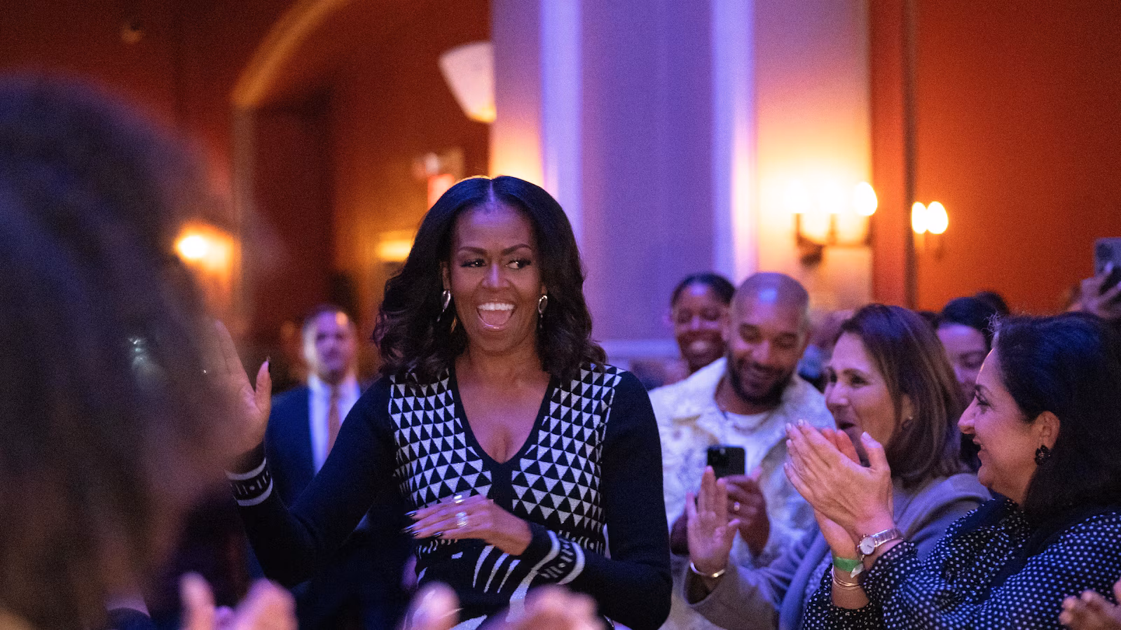 “I was concerned about, ‘Can I hug somebody in it? Will it get dirty?’” she said Wednesday night during a moderated conversation about her style choices dating back to growing up on the South Side of Chicago to when she found herself in the national spotlight as the first Black woman to serve in the role. “I was the kind of first lady that there was no telling what I would do.”